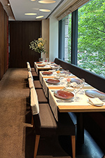 丸の内仲通りに面した解放感あふれる個室空間。片側の大きなガラス窓からは、春夏は新緑、秋冬はイルミネーションなど、季節の風景がお楽しみいただけます。 ※個室利用のない場合は開閉式扉を開き、通常席として開放致します。