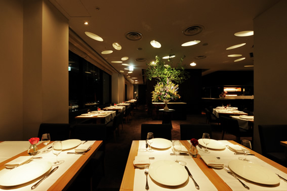 丸の内ブリックスクエア正面玄関の真上に位置するテーブル席は、馬場先門から伸びる通りと丸の内仲通りの交差点に面した、広々とした席です。10名様までのお席をご用意することが可能です。窓を背に店内空間全体を見渡すことができ、最も解放感を味わっていただけるお席です。店内中央の装花を見ながら、優雅な気分に浸っていただけます。